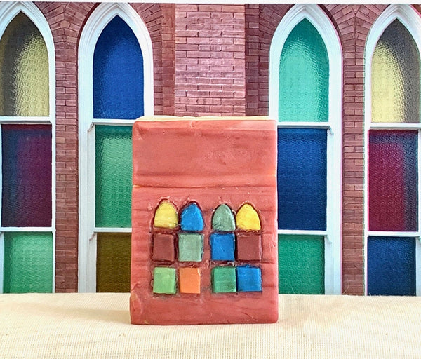 Perhaps one of the most defining features of the Ryman Auditorium is its famous stained-glass windows. We selected our VERY favorite window and replicated it in these unique bars. Each window-pane in the soap is individually and meticulously hand cut.